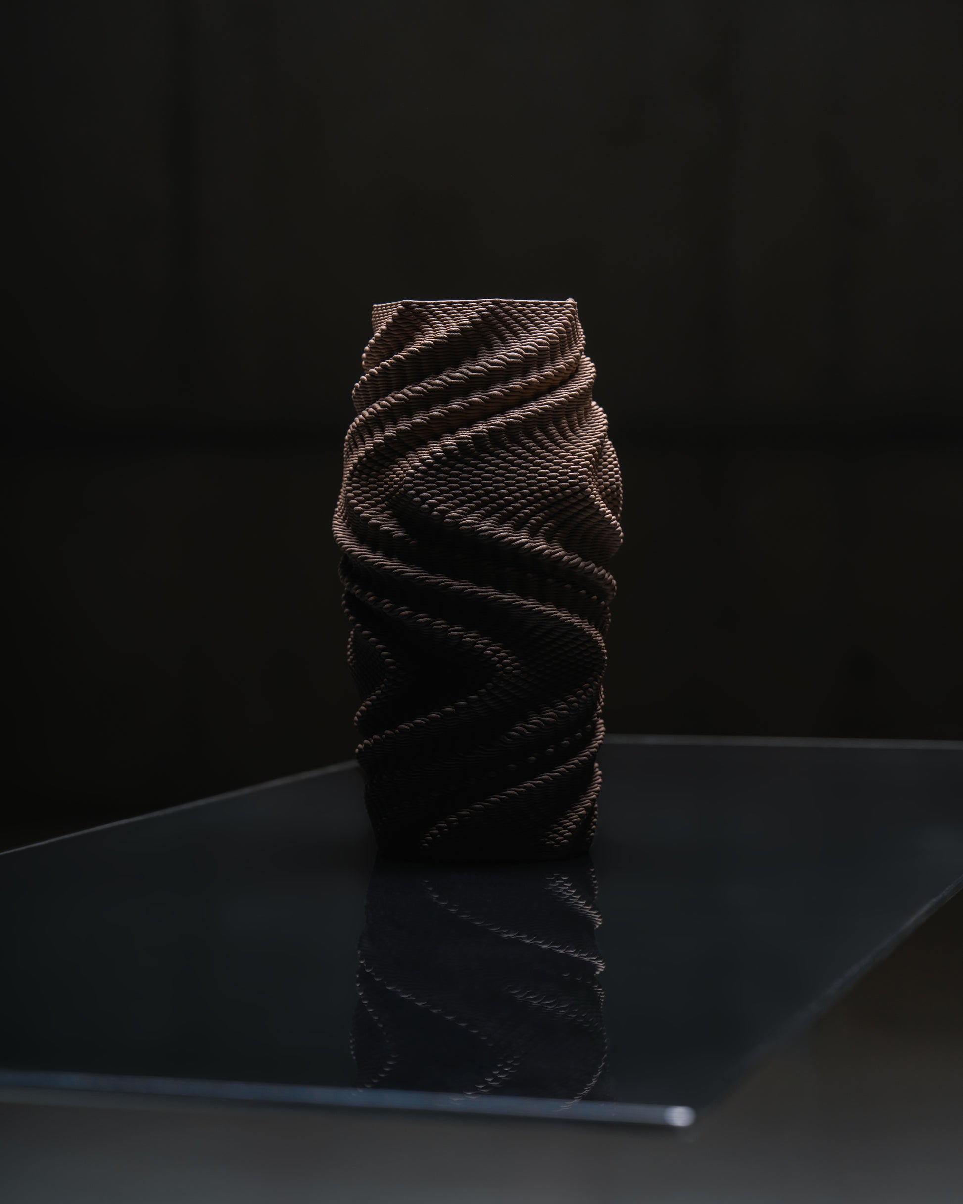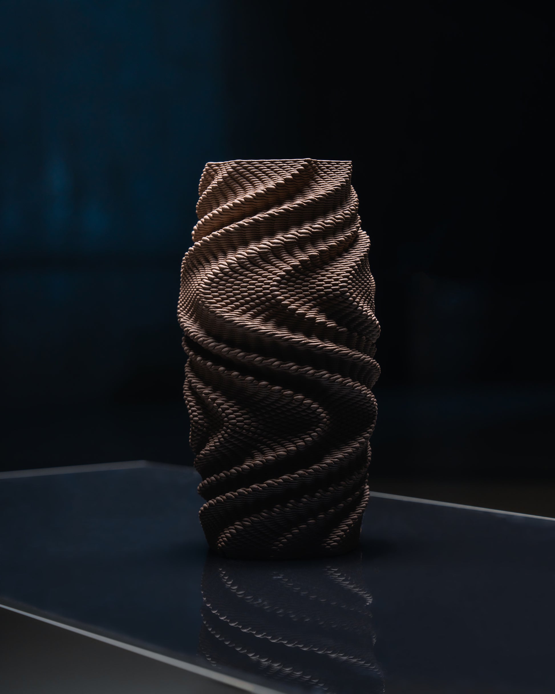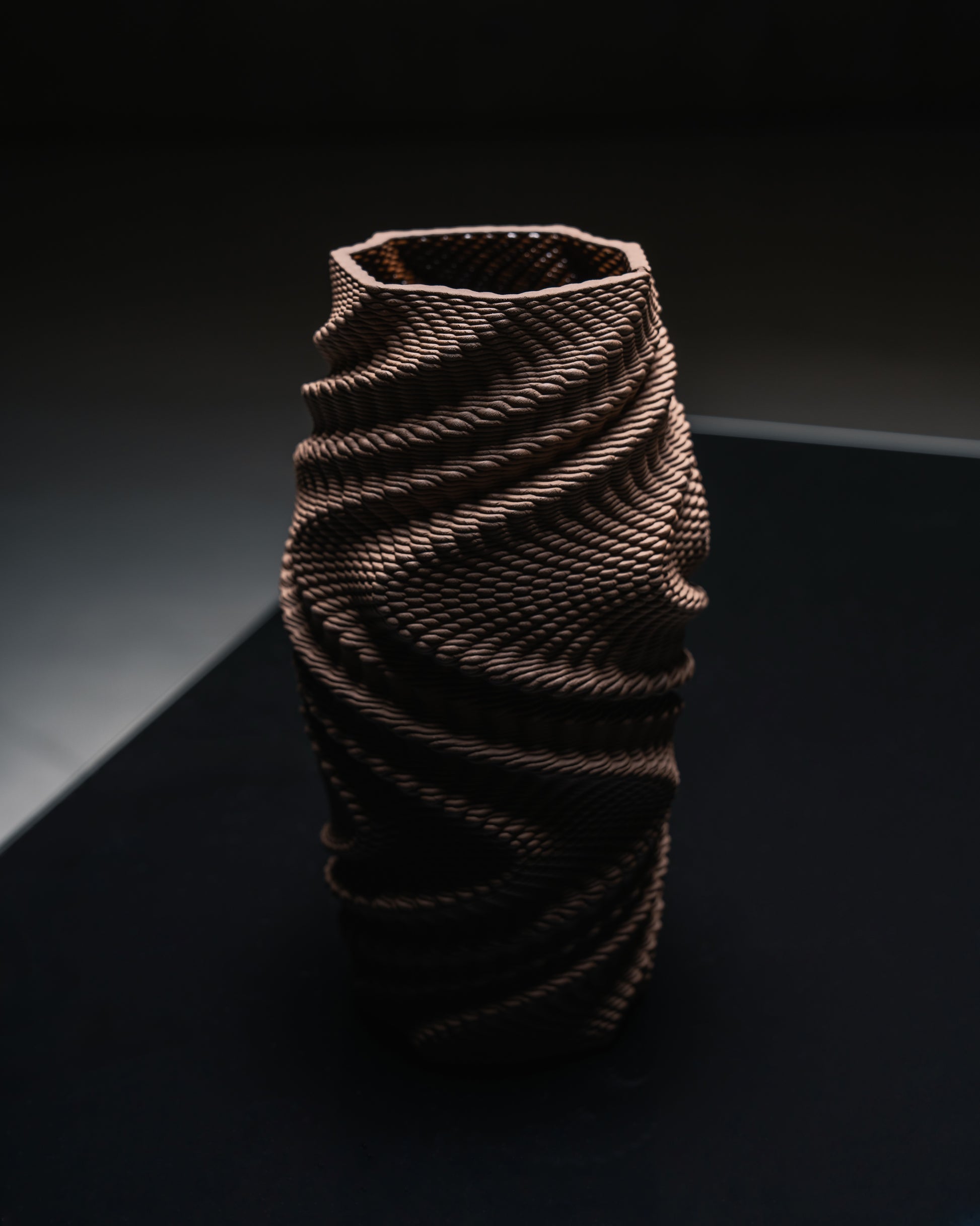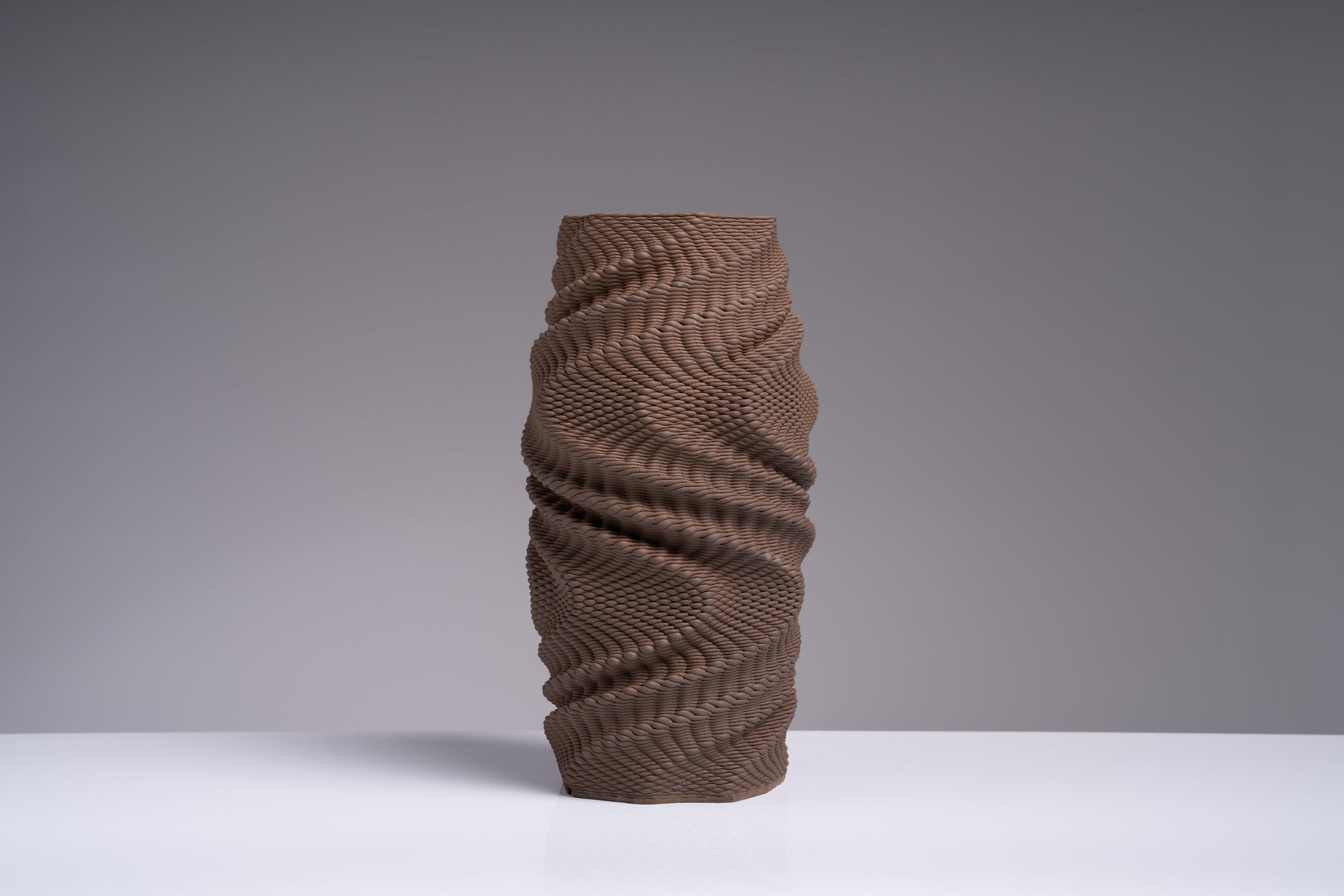 Puncta, tek bir form üzerinde parametrik tasarımla üretilmiş noktasal dokuların beş farklı yorumundan oluşuyor. Yazıcının nozülünün mikro iç–dış atımları kil yüzeyde binlerce çentik bırakıyor; aynı siluette her parça kendine özgü bir ritim ve dramatik gölge oyunu sunuyor.