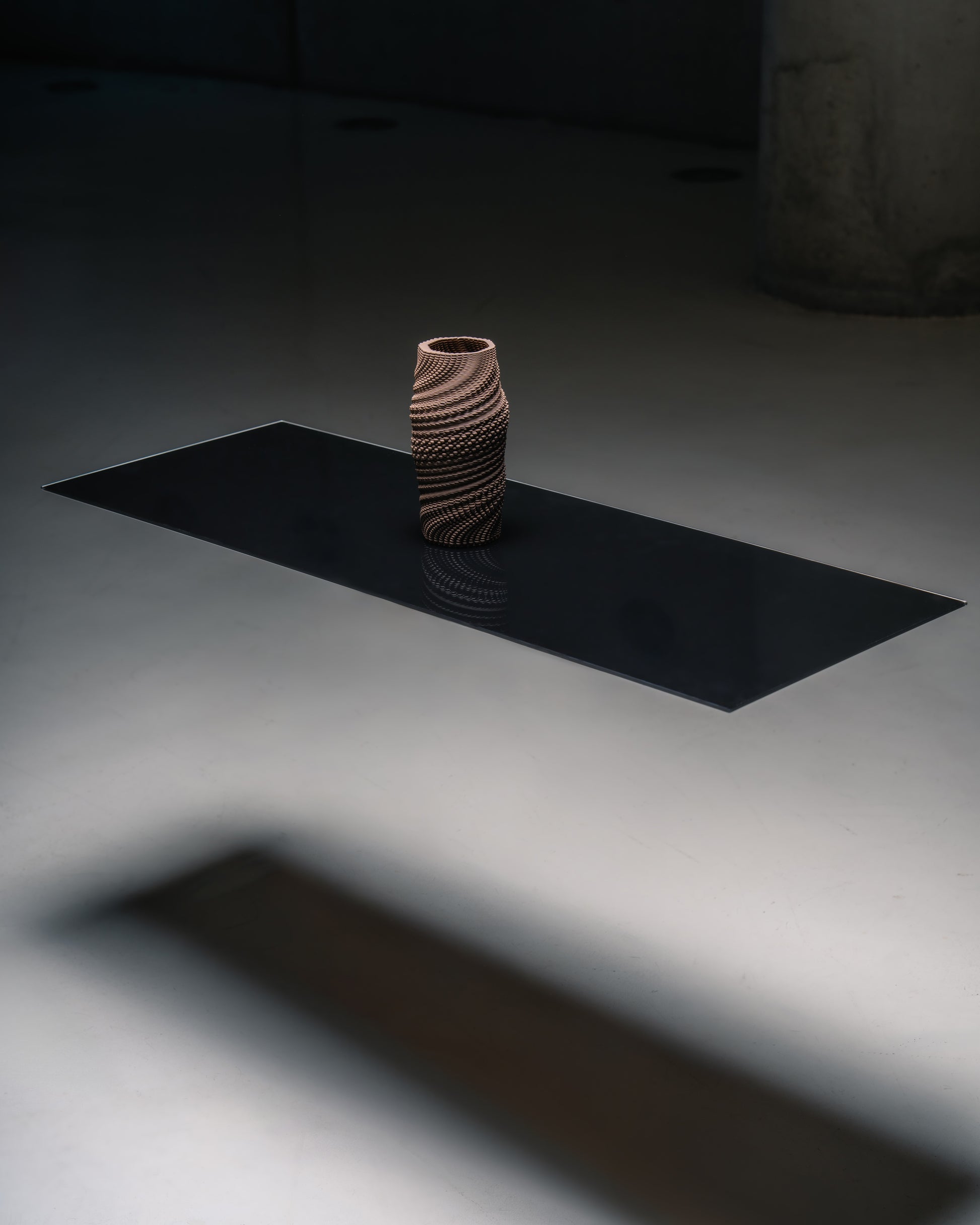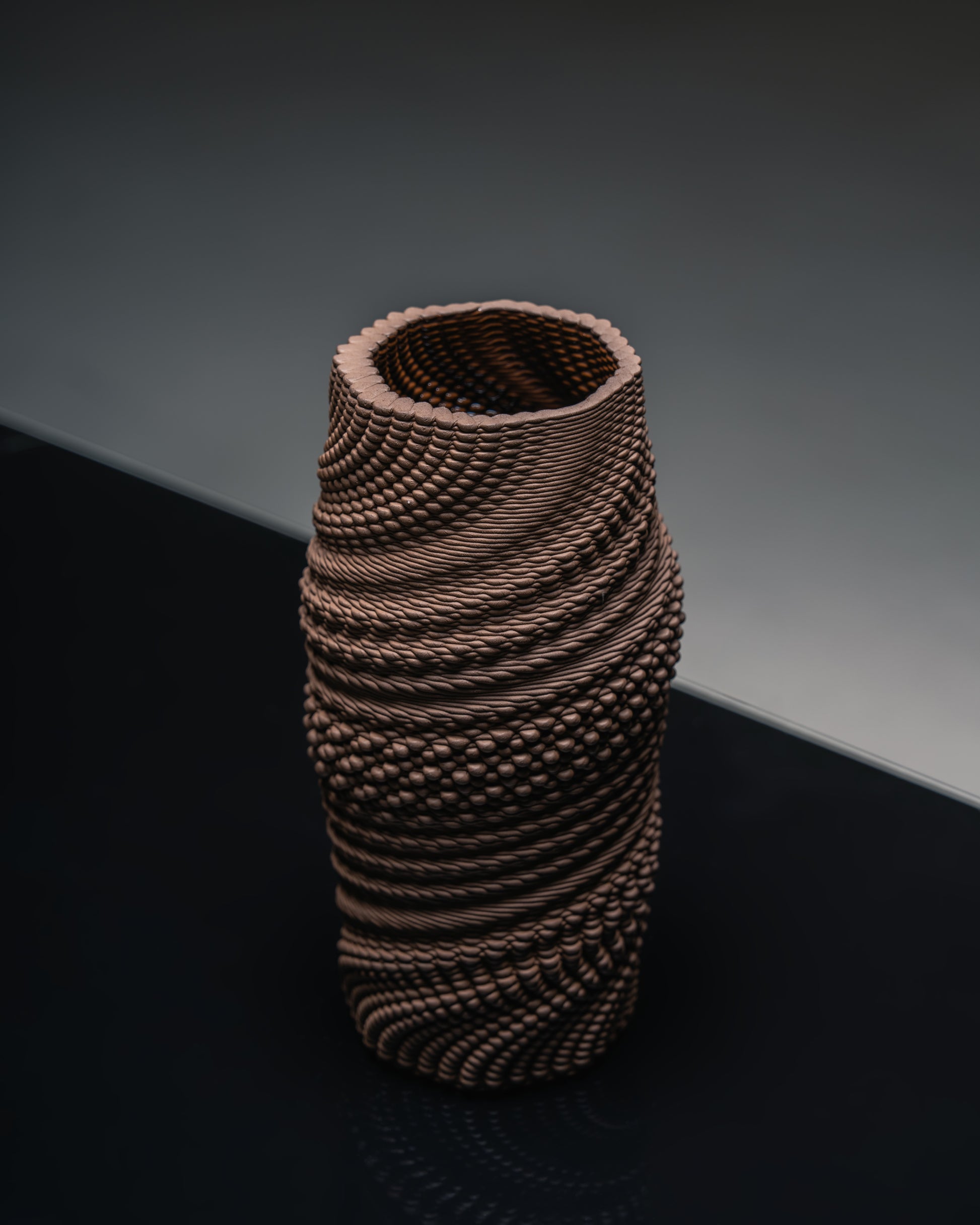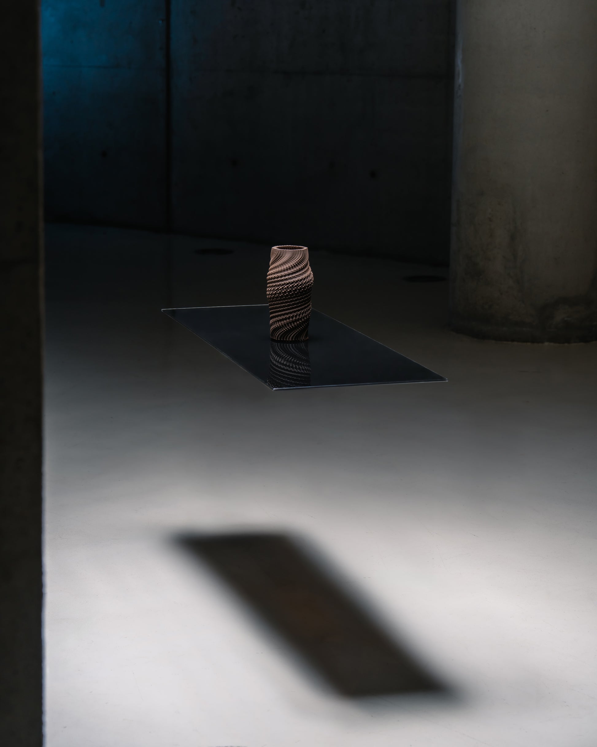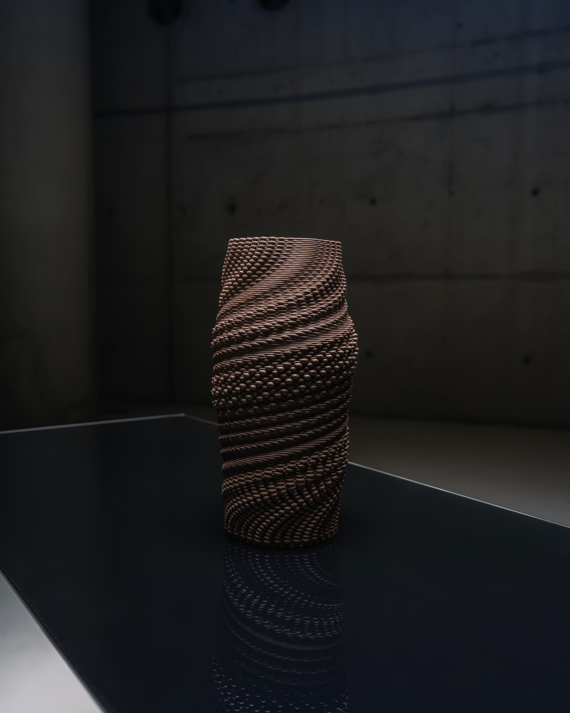 Puncta, tek bir form üzerinde parametrik tasarımla üretilmiş noktasal dokuların beş farklı yorumundan oluşuyor. Yazıcının nozülünün mikro iç–dış atımları kil yüzeyde binlerce çentik bırakıyor; aynı siluette her parça kendine özgü bir ritim ve dramatik gölge oyunu sunuyor.