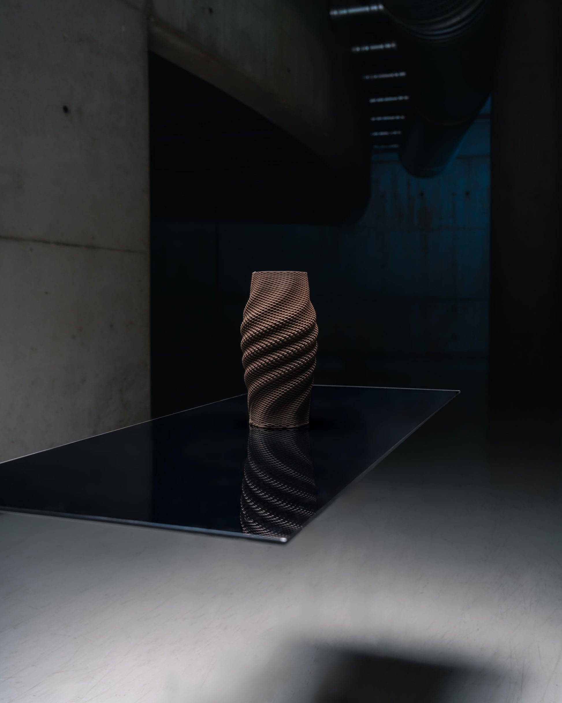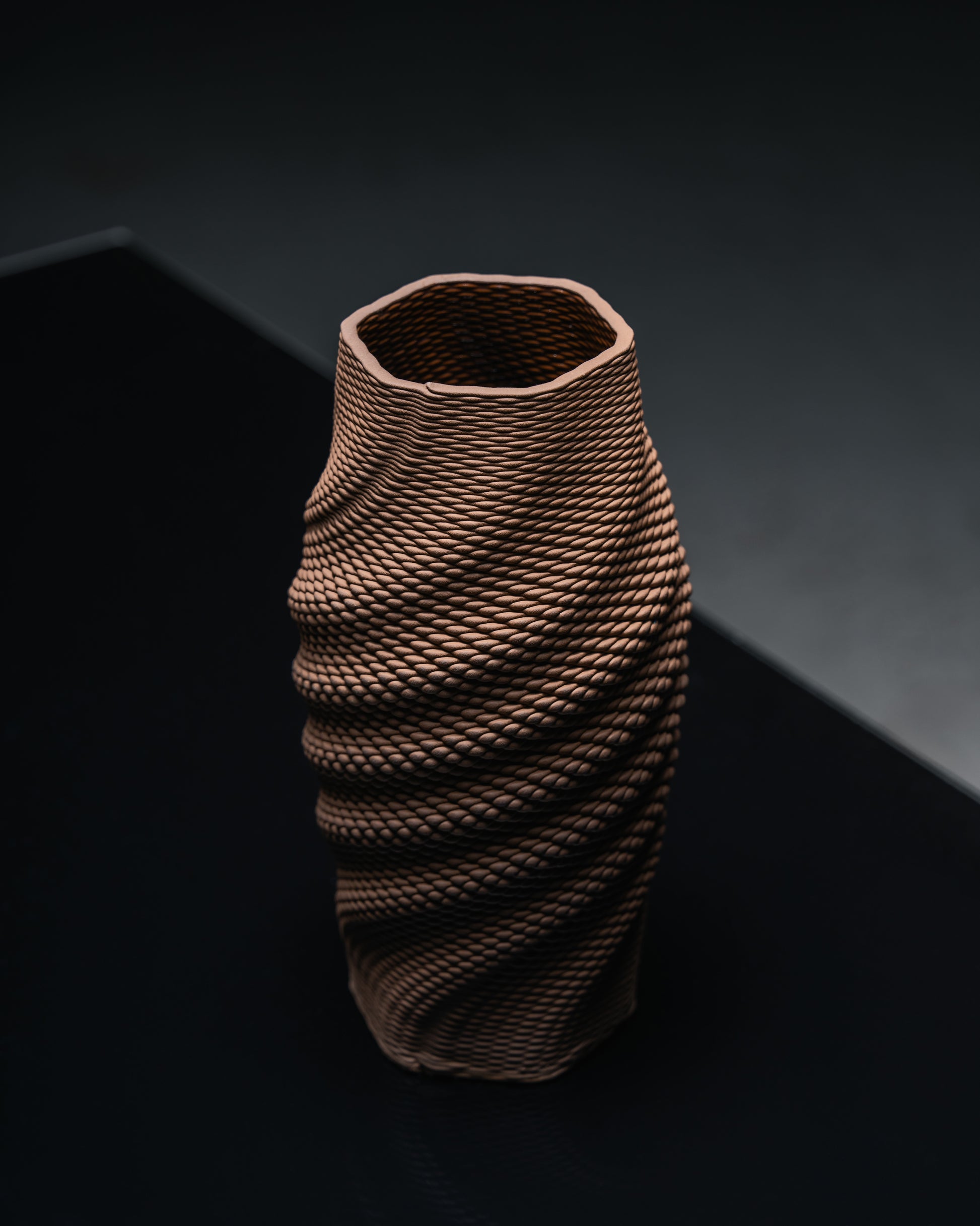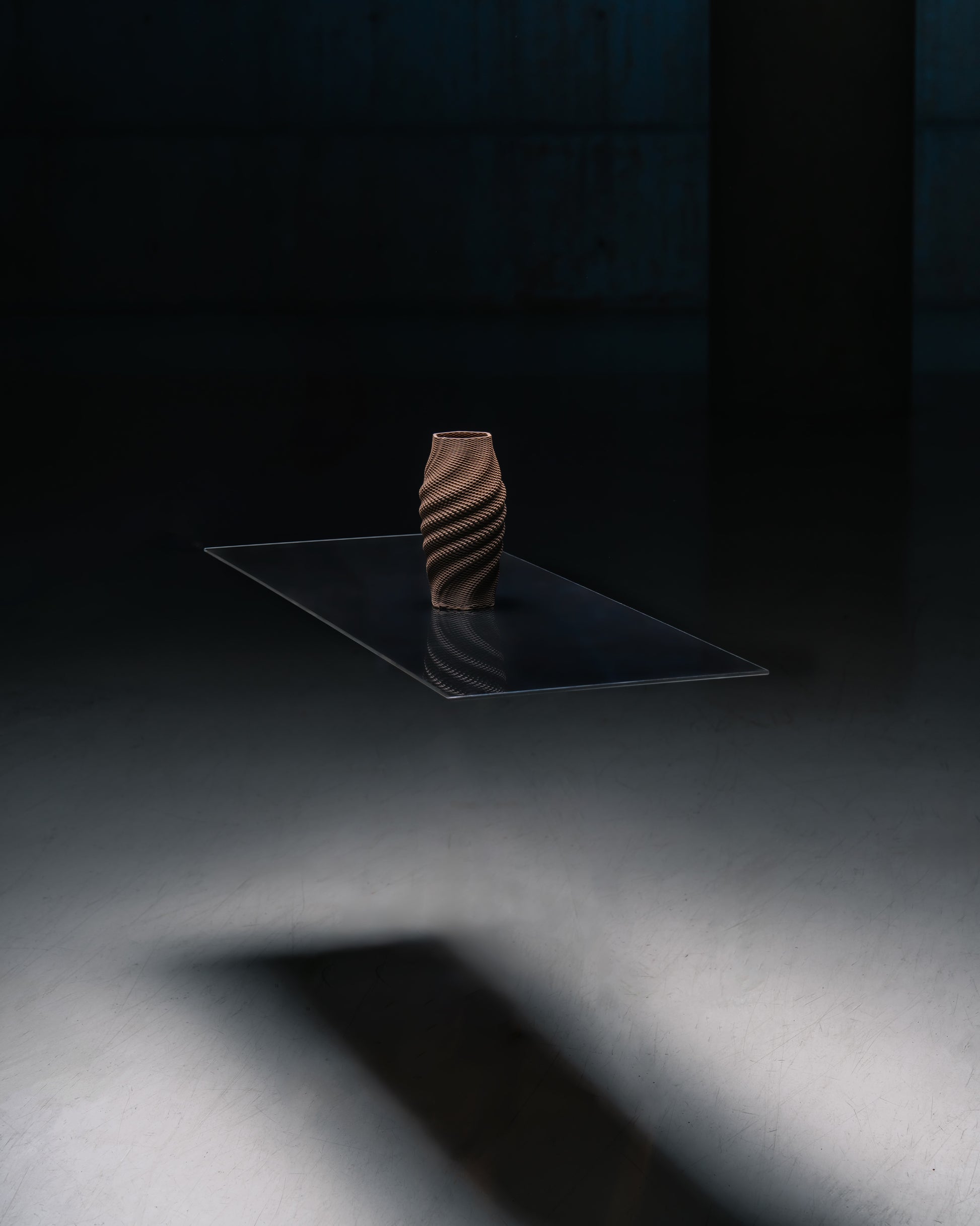 Puncta, tek bir form üzerinde parametrik tasarımla üretilmiş noktasal dokuların beş farklı yorumundan oluşuyor. Yazıcının nozülünün mikro iç–dış atımları kil yüzeyde binlerce çentik bırakıyor; aynı siluette her parça kendine özgü bir ritim ve dramatik gölge oyunu sunuyor.