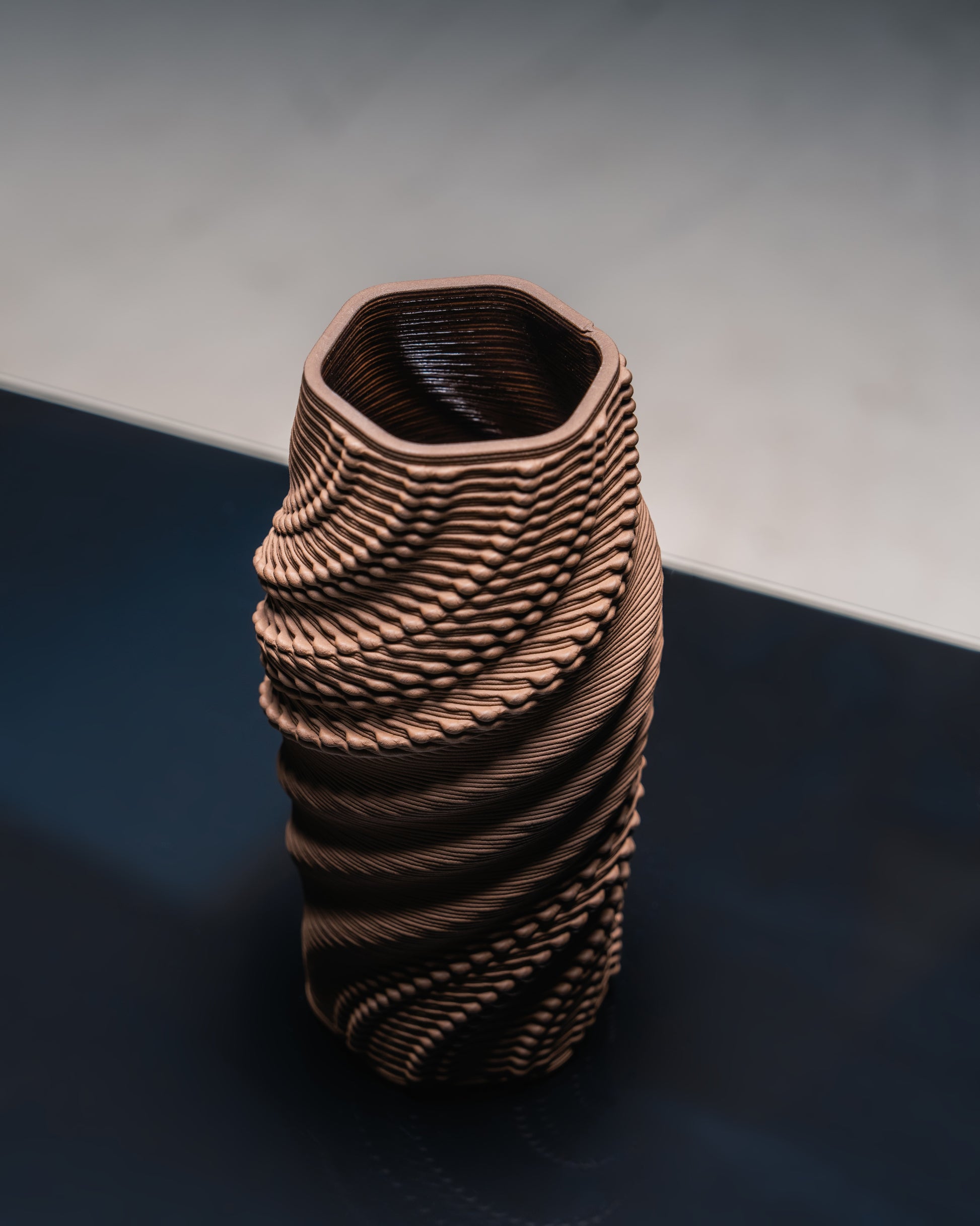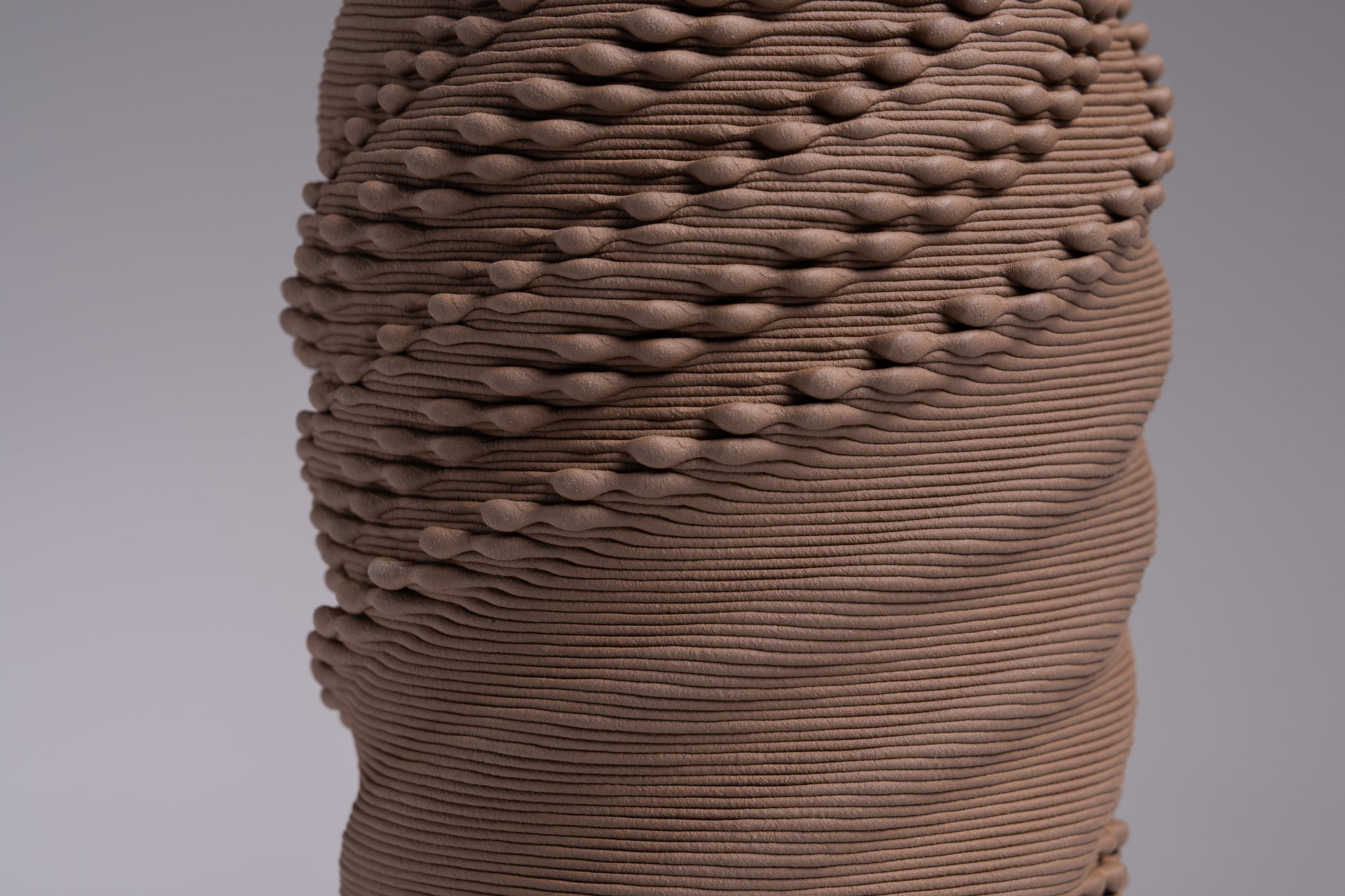Puncta, tek bir form üzerinde parametrik tasarımla üretilmiş noktasal dokuların beş farklı yorumundan oluşuyor. Yazıcının nozülünün mikro iç–dış atımları kil yüzeyde binlerce çentik bırakıyor; aynı siluette her parça kendine özgü bir ritim ve dramatik gölge oyunu sunuyor.